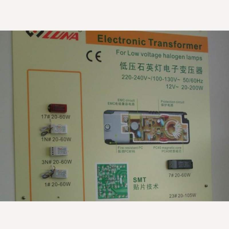 Product line: electronic transformers for halogen lamp, and electronic ballast for fluorescent lamp.